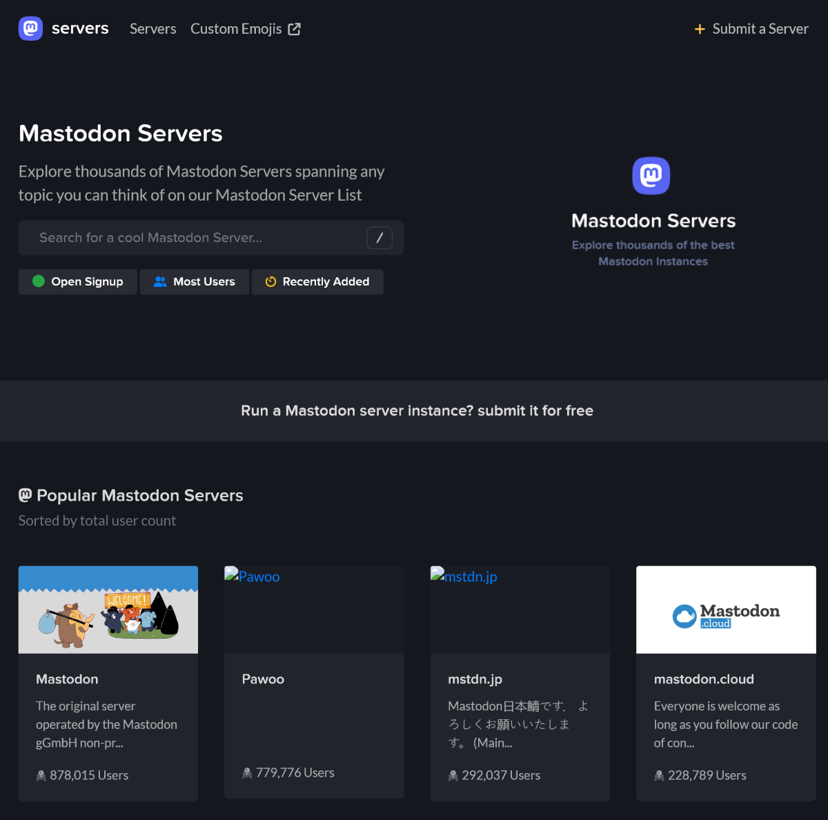 Mastodon — это децентрализованная бесплатная социальная сеть с открытым исходным кодом, наподобие Twitter. У такого подхода есть как плюсы, так и минусы. И один из самых заметных недостатков — проблема с поиском сервера для общения. В этой статье я собрал несколько сайтов со списками серверов для Mastodon.