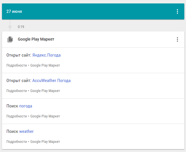 Поэтому используйте мой трюк. В следующий раз, когда вы захотите соорудить машину времени, просто [перейдите на страницу «Мои действия» Google](https://myactivity.google.com/myactivity "страница «Мои действия» Google). Отфильтруйте результаты в «Play», и вы найдёте полный список всех приложений, которые смотрели и искали в Play Маркете.