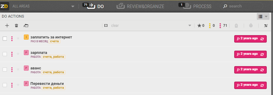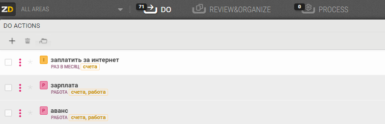 После регистрации перед вами появляются три вкладки: «Do», «Review&organize» и «Process».