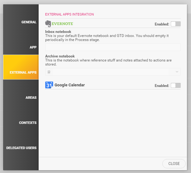 Но, прежде всего, нужно проследовать в раздел настроек и включить интеграцию с Evernote и Google Calendar.