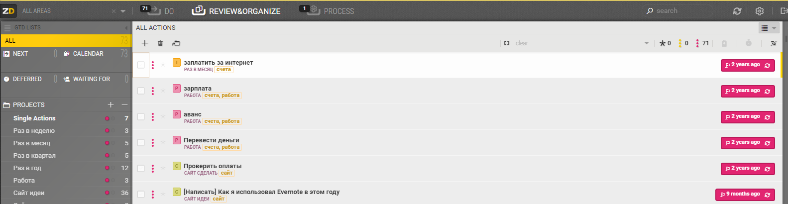 Здесь видны сразу все задачи по всем проектам. На этой вкладке вы можете перемещать задачи между проектами. Добавлять им нужный контекст и прочее.