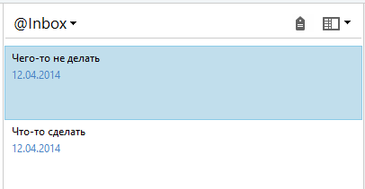 Для того чтобы добавить задание через Evernote, нужно просто создать заметку в своём блокноте по умолчанию. Zendone все заметки из этого блокнота автоматически отображает на вкладке «Inbox».