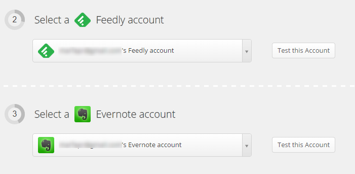На следующем шаге нужно подключить свои аккаунты в Feedly и Evernote: