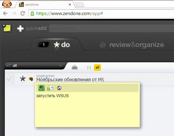 Zapier не поддерживает Zendone напрямую, поэтому мне придется ставить себе задачи через Evernote.