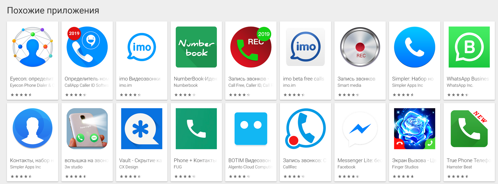 Если в Google Play или App Store вбить определитель номера или перейти к списку аналогов приложений выше, то вы увидите список из десятков похожих приложений.