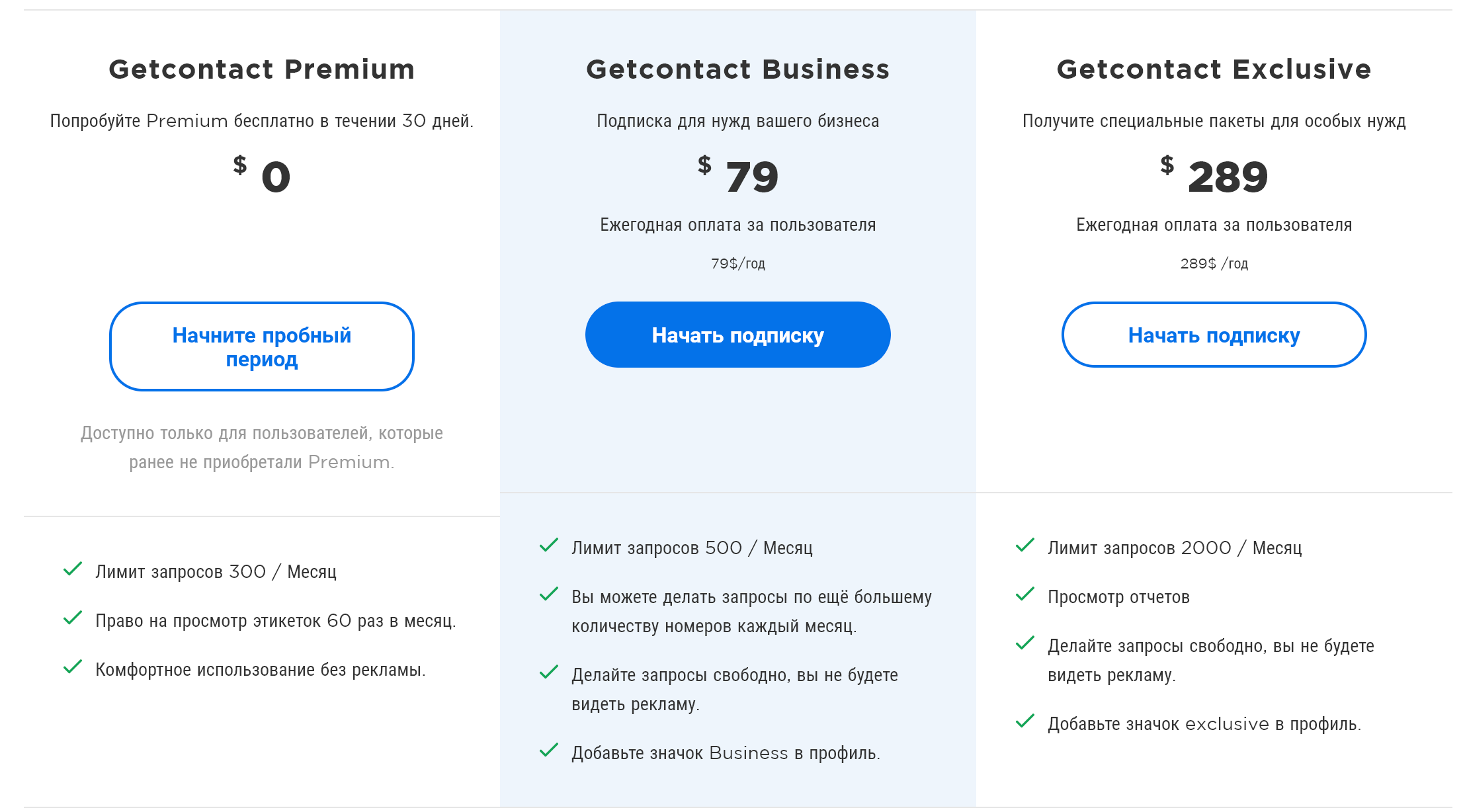 У приложения есть три вида подписок: от бесплатной до 289 долларов в год (для бизнеса). Платная версия убирает рекламу и увеличивает количество запросов (читай «определений номера») в месяц.