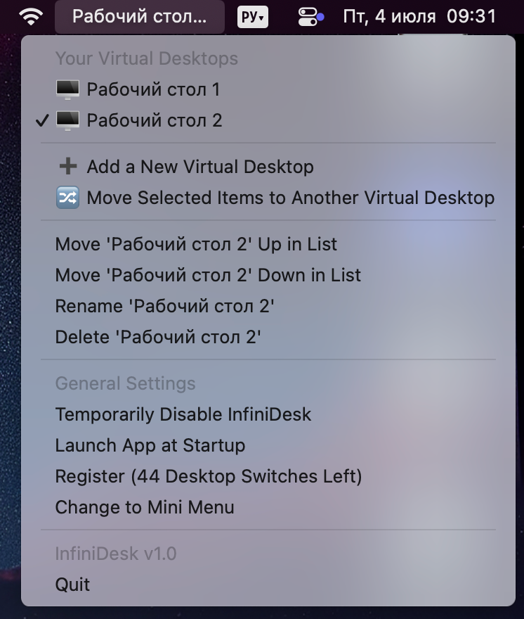 Первые 50 переключений столов будут бесплатными, чего вполне хватает, чтобы понять все возможности InfiniDesk. Затем нужно приобрести лицензию за $12.99.