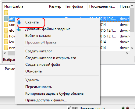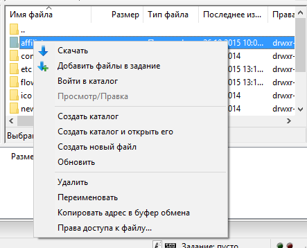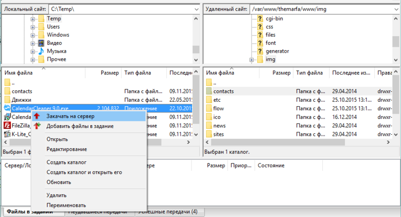 Загрузка файлов с компьютера на сервер и наоборот, удаление, копирование и подобные действия делаются через Контекстное меню. Чтобы вызвать меню нужно кликнуть правой кнопкой мышки по файлу или папке: