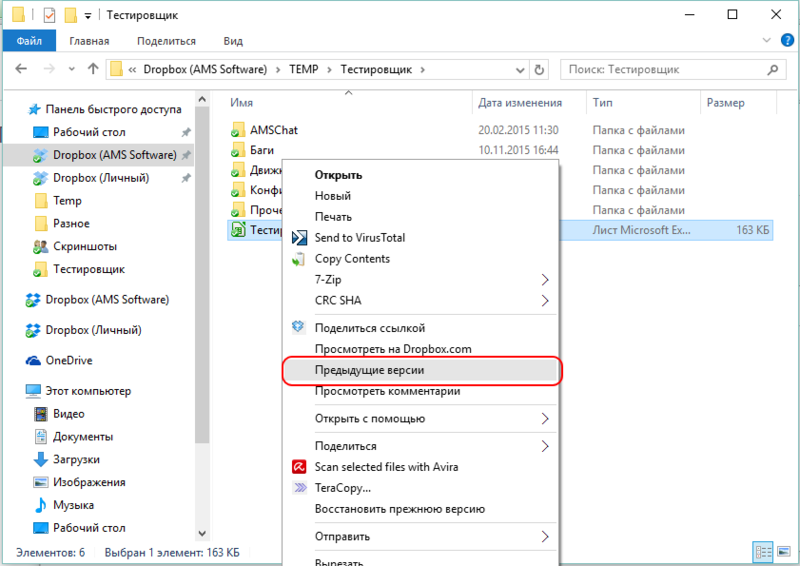 Чтобы восстановить предыдущую версию существующего файла нужно перейти в Проводнике в папку с файлом. Кликнуть по нему правой кнопкой мыши и выбрать в контекстном меню пункт Предыдущие версии: