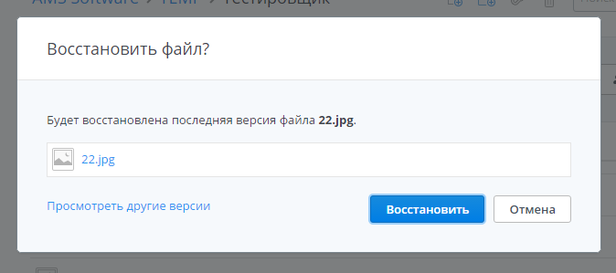 Чтобы восстановить последнюю версию, нужно нажать кнопку Восстановить. Или можно нажать Просмотреть другие версии и восстановить более старые версии (см. выше пункт Восстановление предыдущей версии существующего файла).
