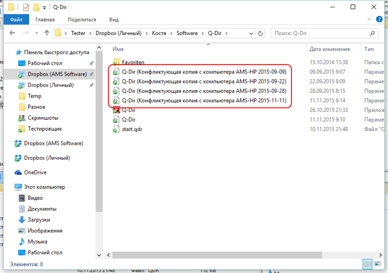 При одновременной работе над одним файлом с нескольких ПК могут возникать конфликтующие копии, которые отображаются в Проводнике с соответствующей пометкой: