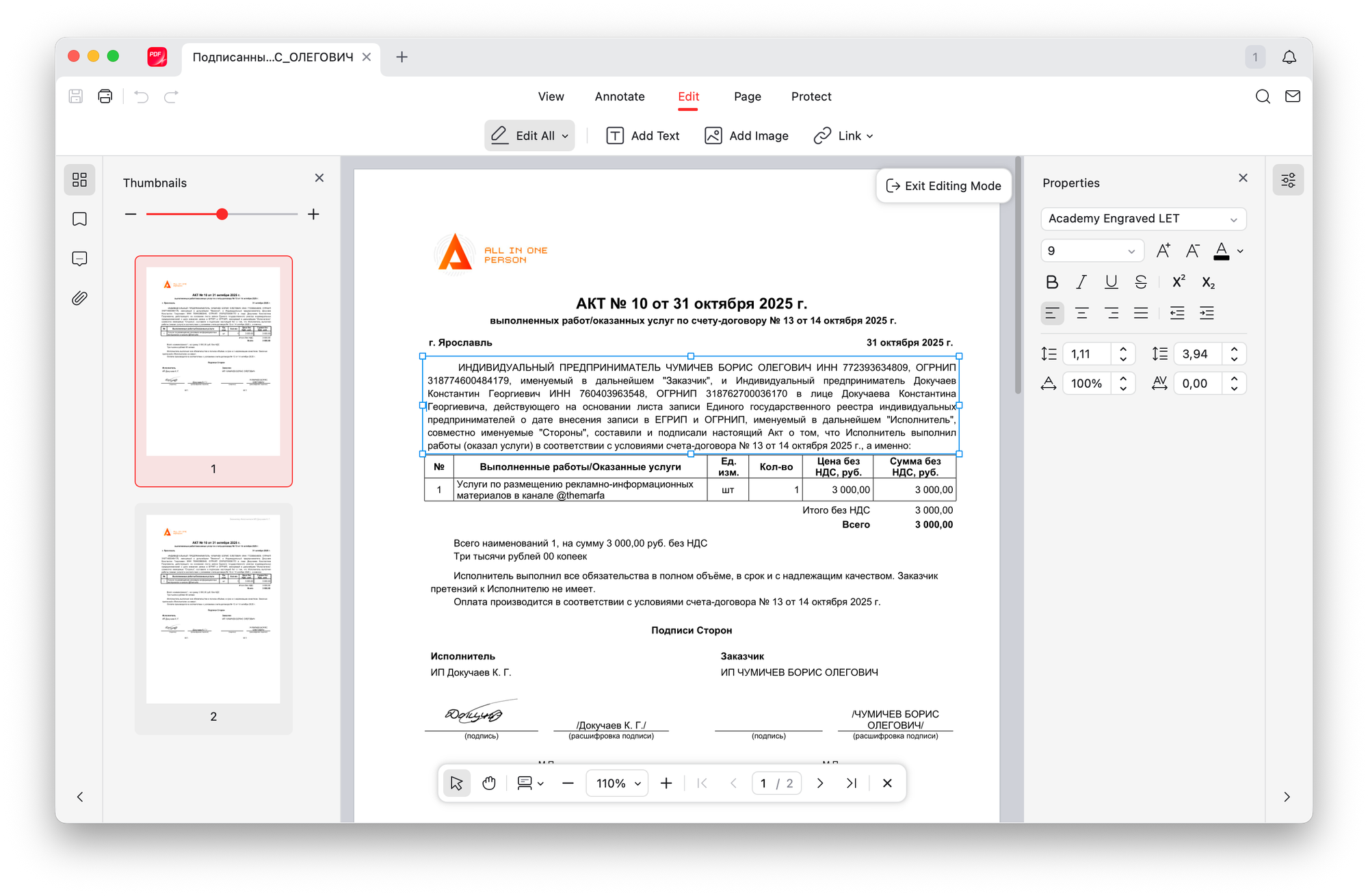 При открытии .PDF файла вы можете перейти в режим редактирования. В этом случае вы сможете не только править текст внутри файла, но и перемещать существующие элементы и добавлять новые.