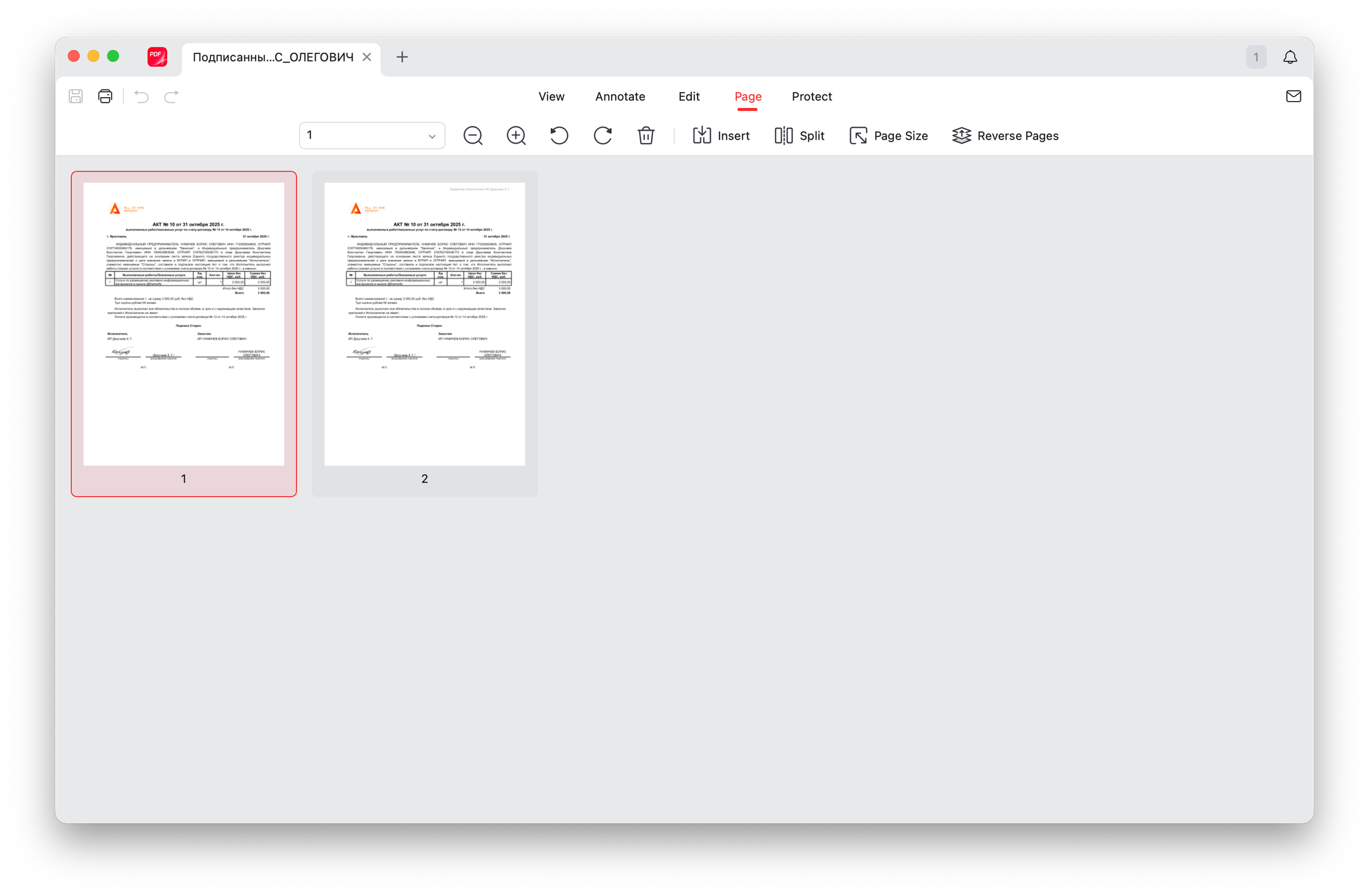 В режиме работы со страницами вы можете разделять файл на несколько отдельных файлов, удалять или добавлять страницы.