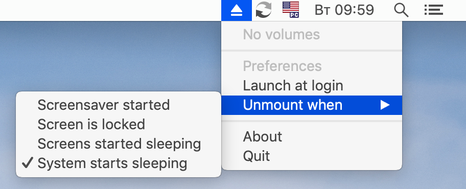 Единственная настройка у Ejectify – это выбор, когда внешний диск нужно отключить: при запуске скринсейвера, при выключении экрана, при уходе устройства или монитора в сон. При наступлении одного из этих действий флешка будет предварительно отключена по всем надлежащим шагам. А при вашем возвращении автоматически будет подключена обратно.