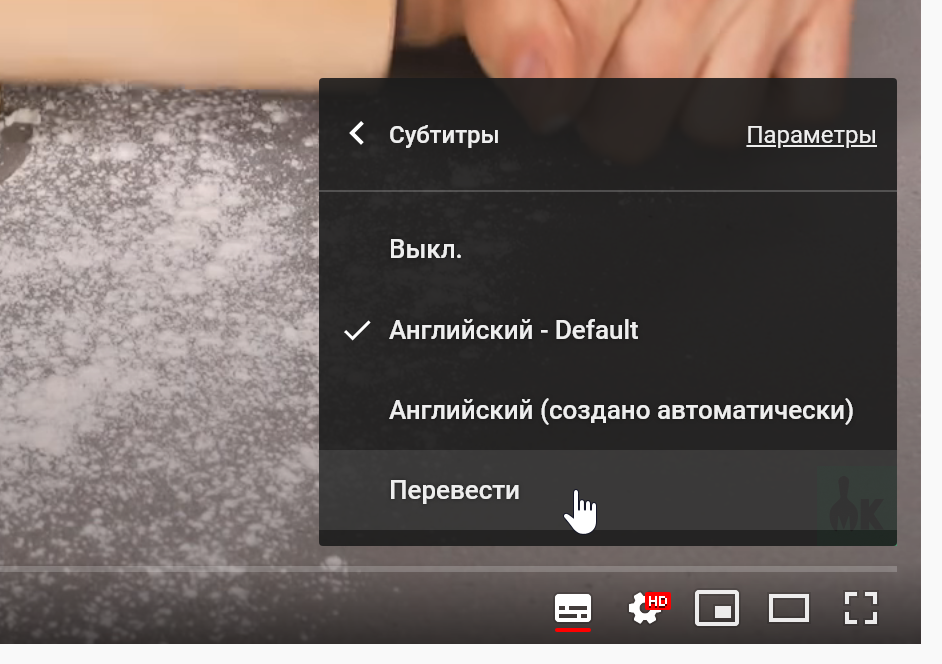 Откройте любое видео на площадке и включите встроенные субтитры. Это могут быть либо созданные автором сабы, либо автоматические – неважно.