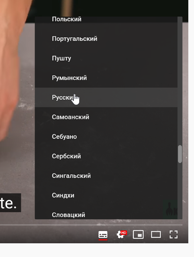 Теперь у видео будут отображаться субтитры на нужном вам языке.