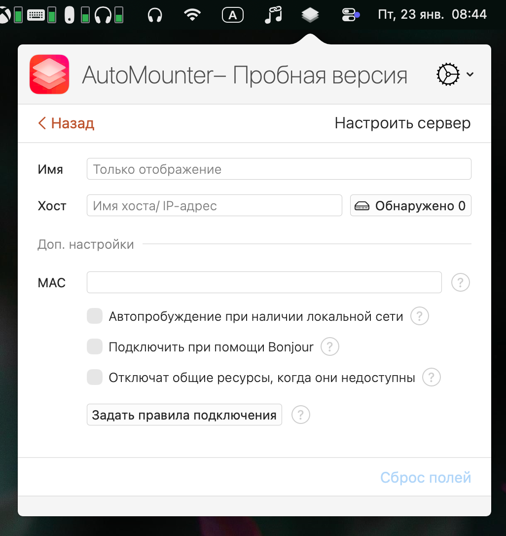 Автоматизировать их подключение можно с помощью утилиты AutoMounter. Для этого после её запуска нужно указать параметры подключения сетевого диска.