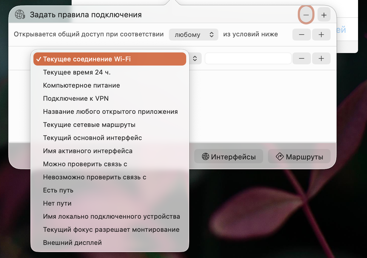 Среди правил есть проверка текущего подключения, времени, наличия пути и многое другое.