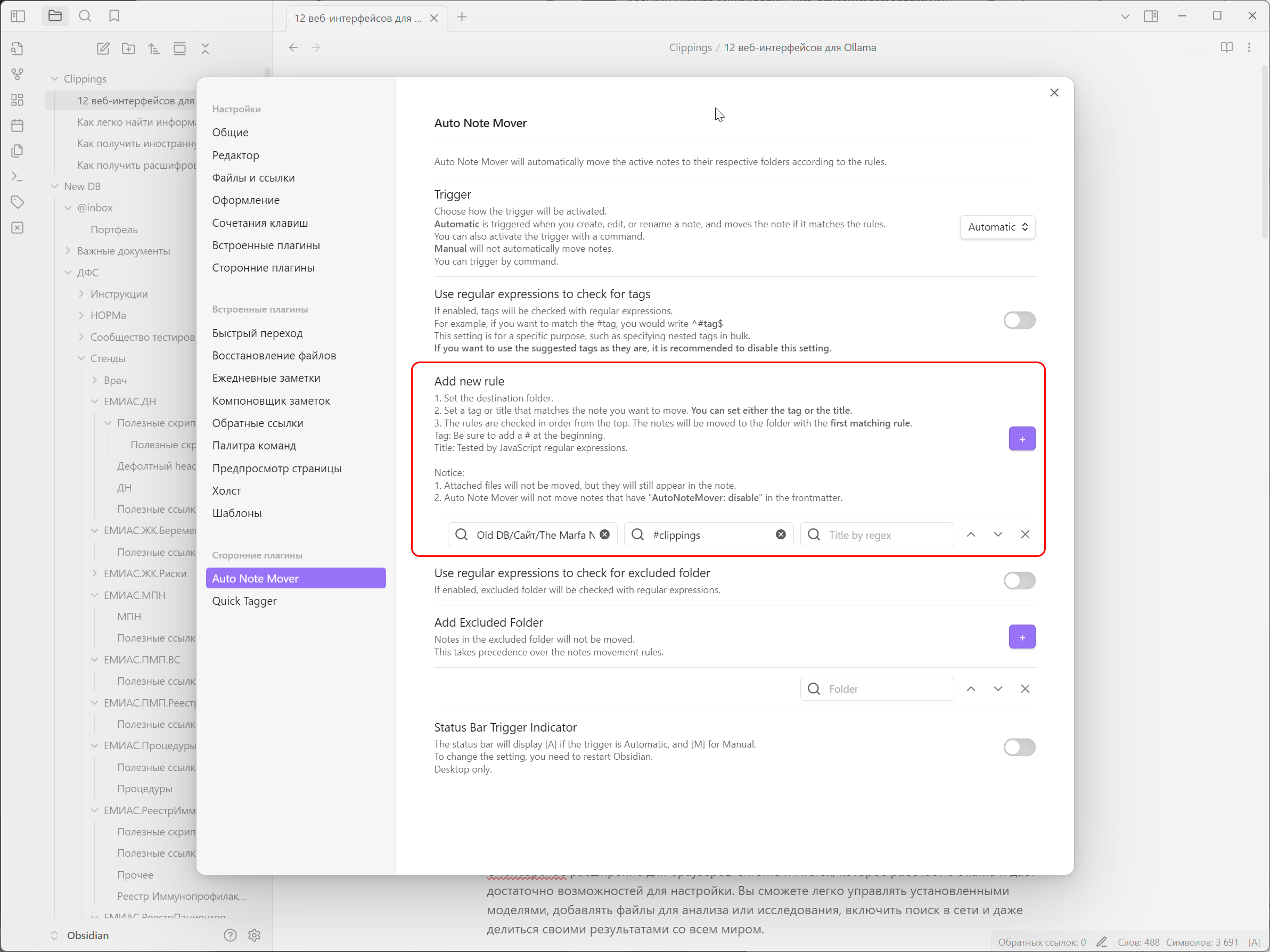 Но есть заметки, которые можно было бы разложить автоматически без моего участия. И с этим мне помогает плагин Auto Note Mover.