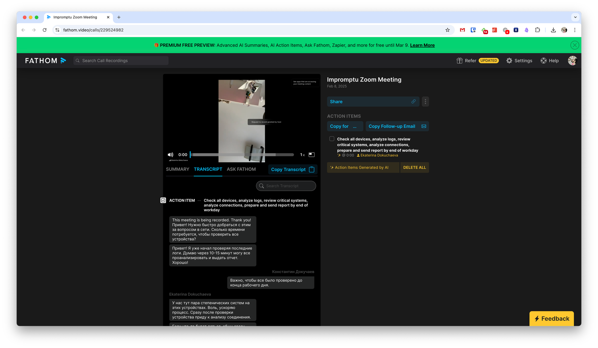 Если ваши созвоны проходят в Teams, Google Meet или Zoom, то можно воспользоваться приложением Fantom. С его помощью вы сможете автоматически записывать встречи, получать их расшифровку и быстро понимать, кто за что отвечает.