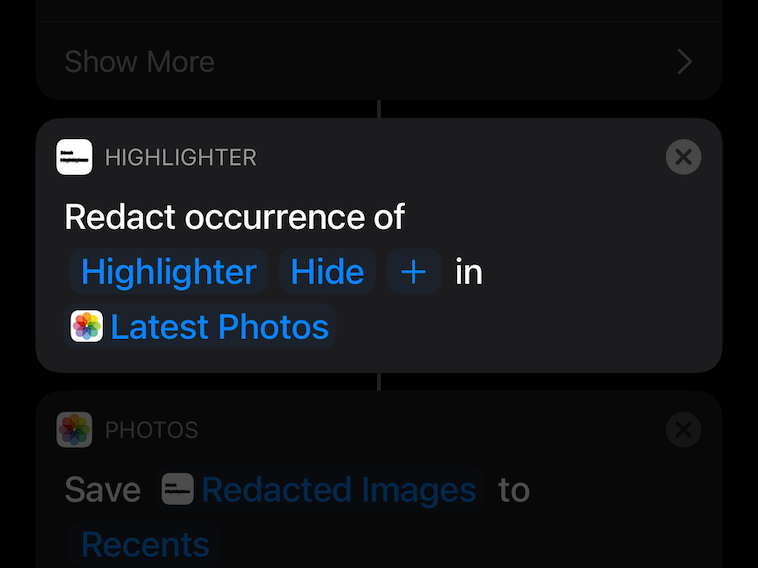 Black Highlighter интегрируется с Automator в macOS и Shortcuts в iOS, что расширяет возможности редактирования. Предоставьте изображение и набор слов для редактирования, и приложение вернёт его вам в отредактированном виде.
