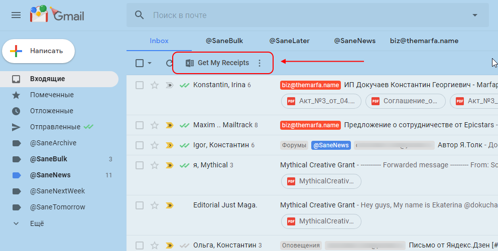Затем в Gmail нужно просто нажать кнопку «Get My Receipts» и подождать какое-то время.