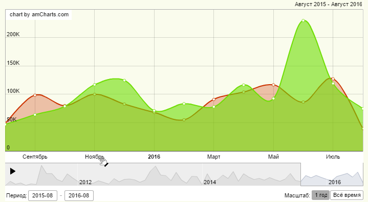 После настройки всех правил вам остаётся только наблюдать за балансом в местах хранения или строить вот такие красивые графики. А обработка транзакций будет осуществляться автоматически.