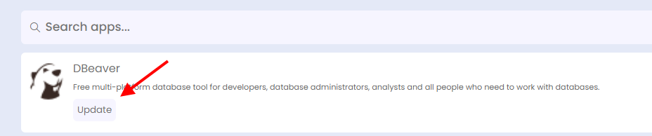 Для этого достаточно у выбранного приложения нажать кнопку Update и протыкать все шаги в инсталляторе, когда он скачается.