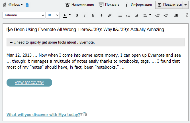 Работа с Mya и Evernote