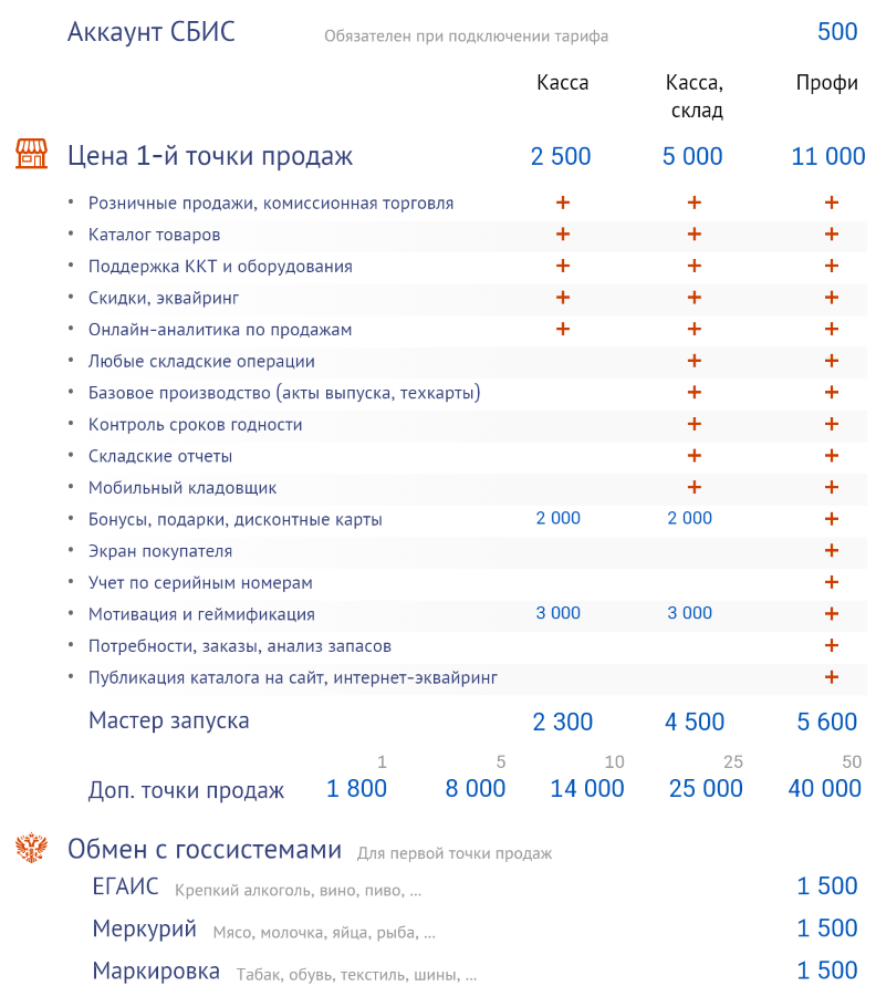 Торговля маркированным товаром в системах ЕГАИС, Меркурий и «Честный знак» с помощью СБИС позволяет вести строгий учёт продаж алкоголя, сигарет и поднадзорной продукции (мясо, молоко, мёд и другое).
