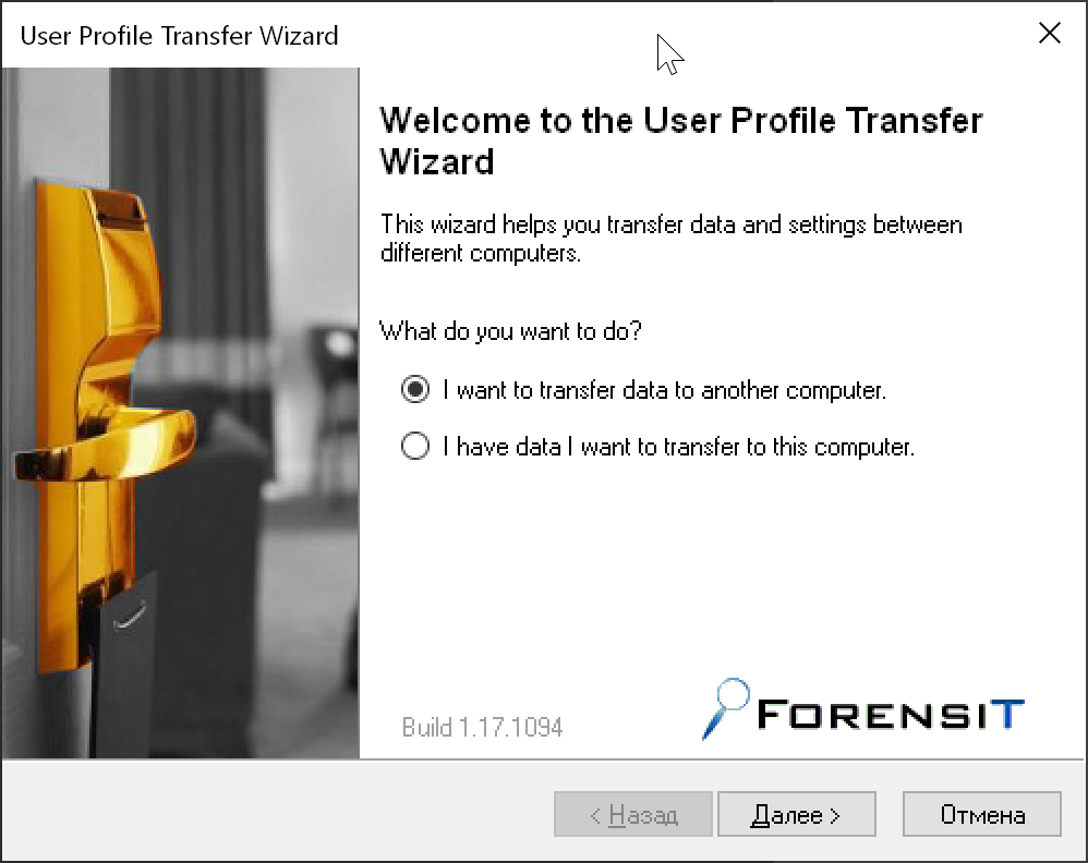 "I want to transfer data to another computer" создаст бэкап профиля для переноса на новый компьютер. "I have data I want to transfer to this computer" нужен для восстановления профиля на новом компьютере.
