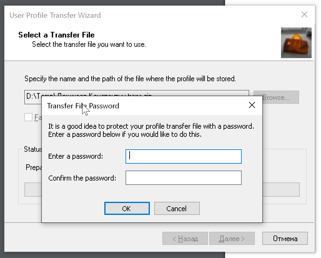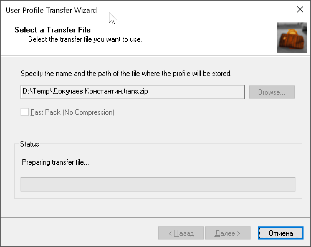 И после этого остаётся подождать от нескольких минут до нескольких часов, пока Transwiz создаёт резервную копию профиля.
