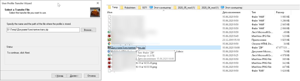 Если ничего не менять, то профиль будет импортирован как есть. Если профиль уже существует, то можно выбрать слияние данных с заменой или без файлов или создать новый локальный профиль.