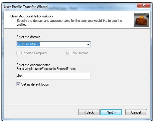Если компьютер относится к домену, то можно выбрать домен и указать имя профиля.
