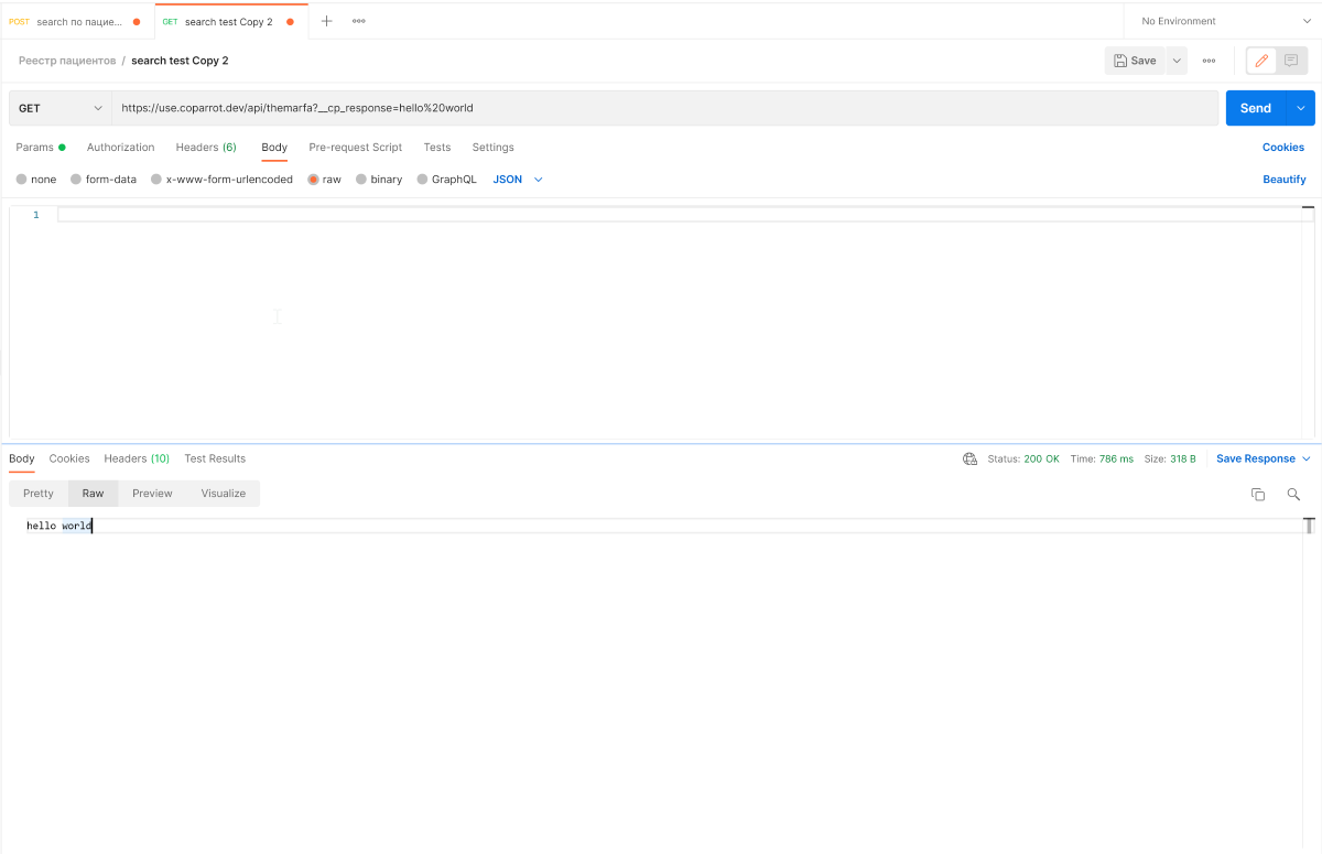 К примеру, https://use.coparrot.dev/api/themarfa?__cp_response=hello%20world вернёт Hello, World.