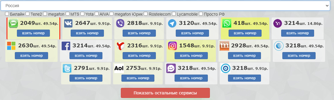 Правда, получение СМС для некоторых сервисов доступно не во всех странах. Например, ВКонтакте не будет при выборе номера в США. Дополнительно можно выбрать мобильного оператора. Поддерживаются: Билайн, Теле2, Мегафон, МТС, Йота и другие.