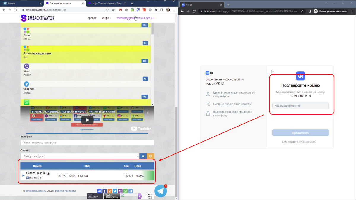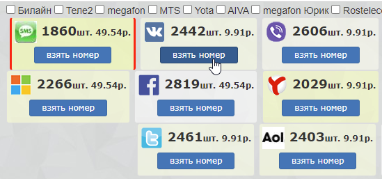 Когда всё готово, нужно нажать кнопку Взять номер у нужной социальной сети.