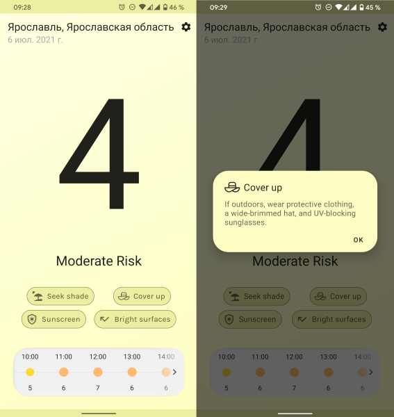 Во многих приложениях для прогноза погоды есть отображение индекса ультрафиолета. Но он часто выглядит сложно и непонятно. А разработчики Sunny Side сделали эту информацию доступной и понятной всем.