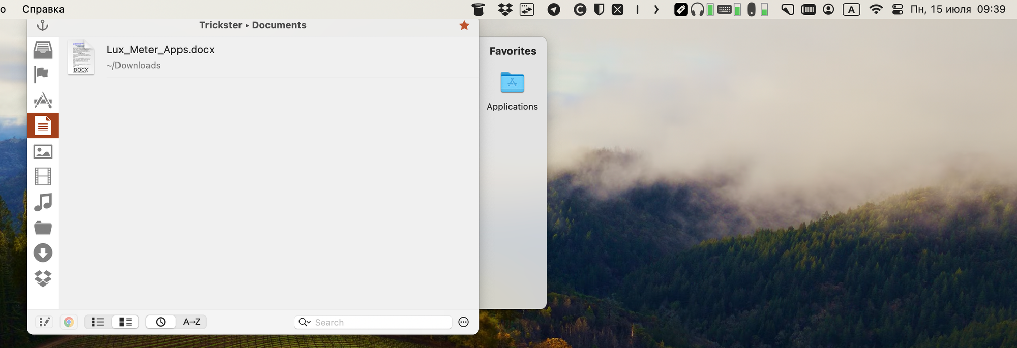 При вызове приложения из Строки меню откроется окно, в котором вы сможете увидеть недавно использованные файлы с разбитием по категориям: приложения, документы, фото, видео и прочее.