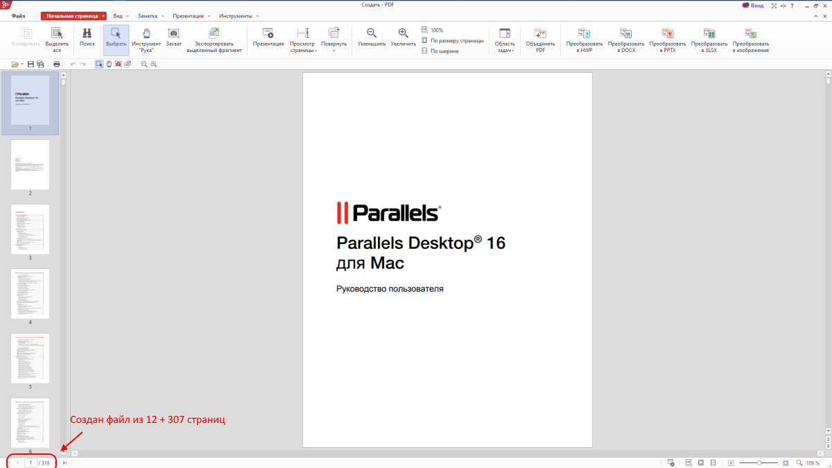 Для проверки я взял PDF-файл на 8,8 Мб и 307 страниц.