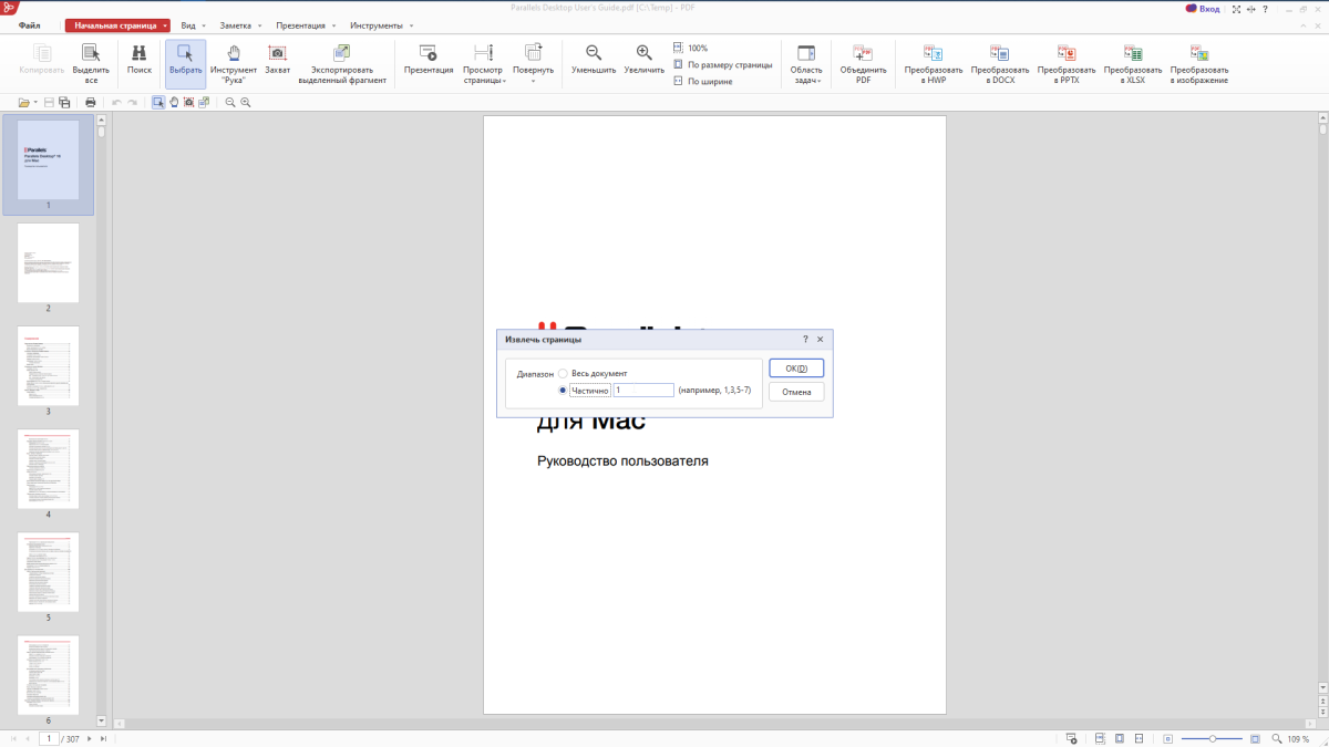 При нажатии на OK откроется новый PDF-документ с указанным диапазоном страниц.
