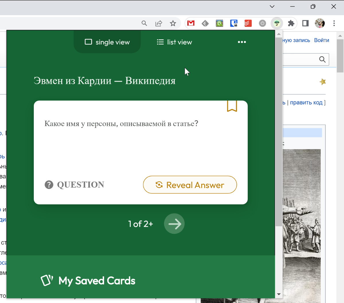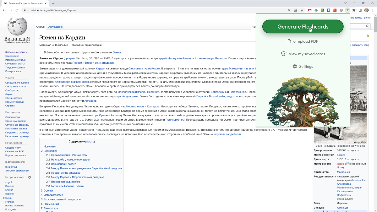 А теперь представьте, что вы находитесь на сайте, информацию с которого вам нужно запомнить. И вы можете самостоятельно создать флэш-карты или попробовать их сгенерировать автоматически с помощью Jungle – расширения для браузера Chrome.