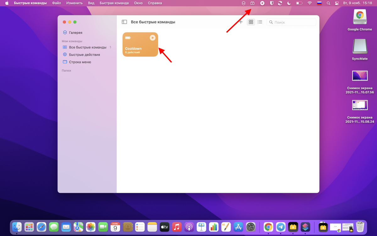 После чего переключаться между режимами энергосбережения можно либо по клику на быструю команду Cooldown, либо по иконке в панели меню macOS.