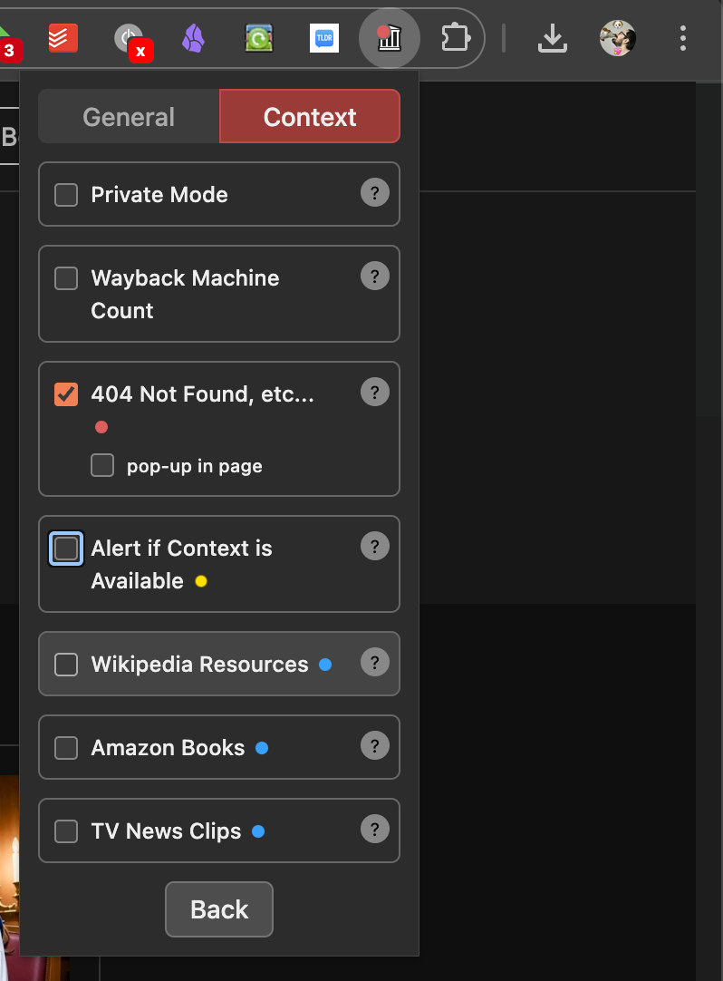 Или можно просто установить расширение Wayback Machine, которое будет вас автоматически оповещать о наличии сохранённой копии страницы 404.
