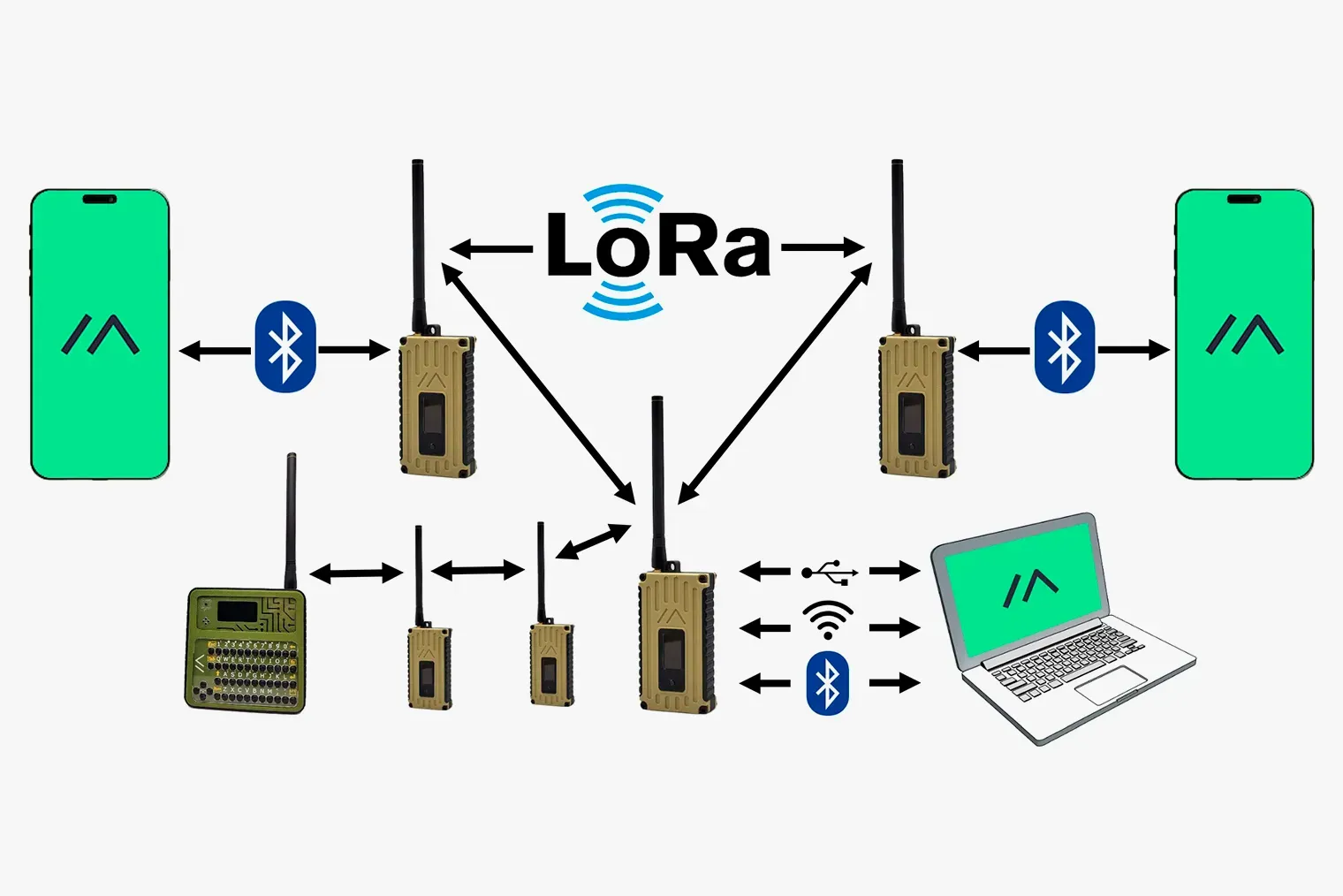 Стоит различать две эти технологии: LoRa отвечает за физический уровень связи: именно она задаёт характеристики радиосигналов — частоту, модуляцию, мощность. Meshtastic — это особый протокол работы LoRa-раций, при котором все они объединяются в самоорганизующуюся ячеистую сеть (mesh). В такой сети каждое устройство автоматически становится ретранслятором для соседних, что позволяет сигналу «перепрыгивать» от одного участника к другому и значительно расширять общую зону покрытия.