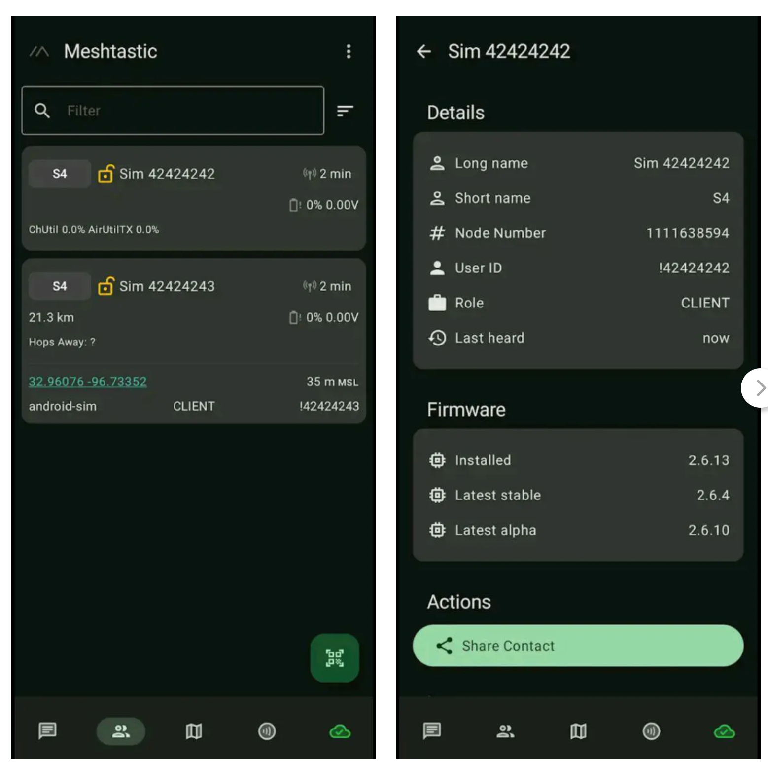 Для Meshtastic существуют официальные клиенты под Android и iOS — интерфейс напоминает обычный мессенджер, но с учётом специфики радиосвязи. Там можно настраивать параметры, видеть соседние узлы на карте, отправлять и получать сообщения. На компьютере используется браузерный веб-интерфейс.
