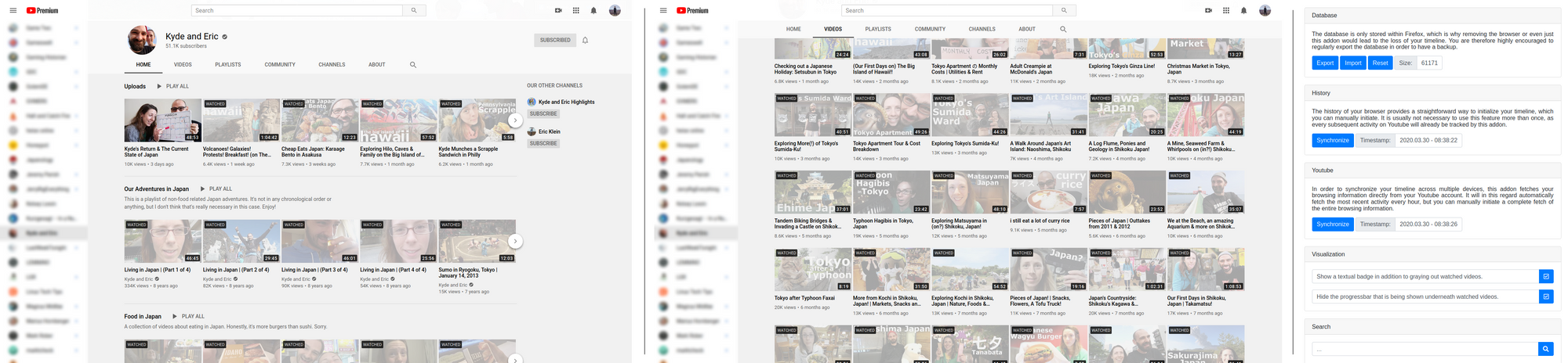 В настройках расширения можно импортировать или экспортировать историю просмотров, а также вручную запустить синхронизацию этого списка с данными на YouTube или историей браузера.