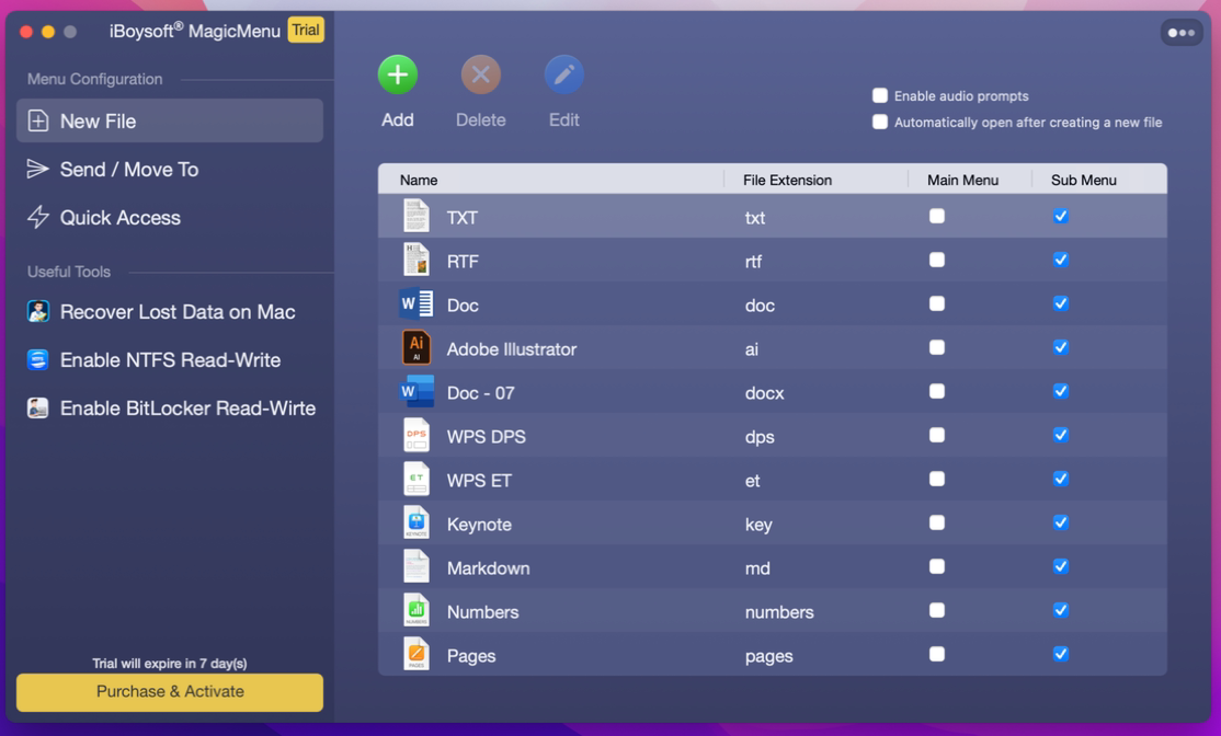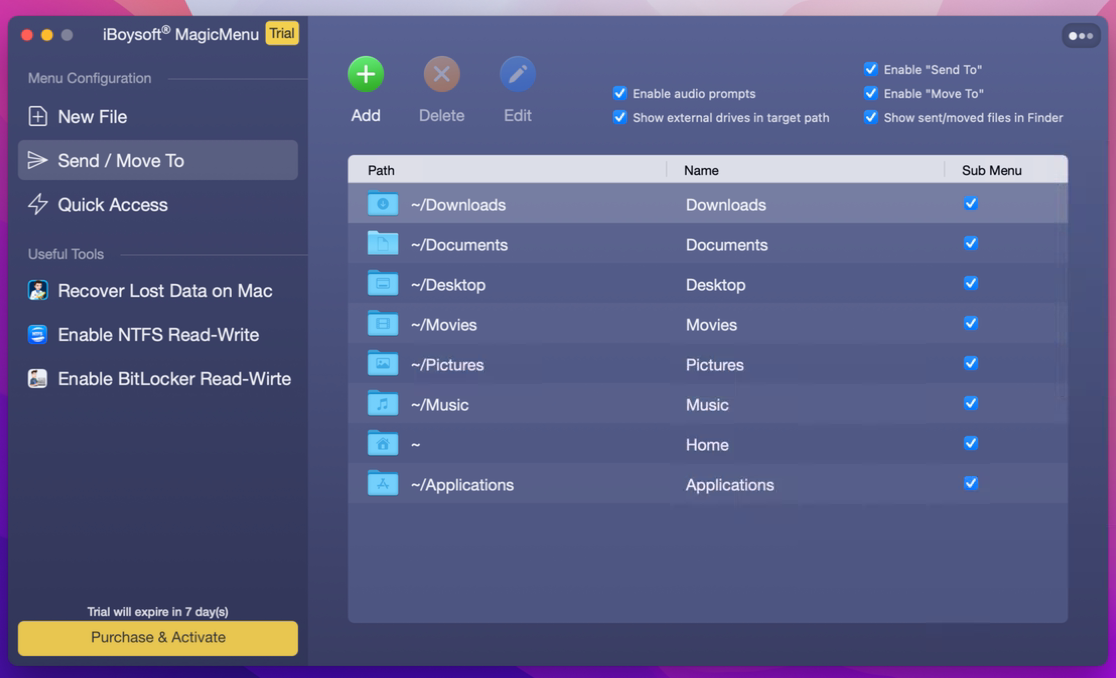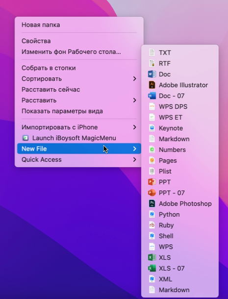 Для этого нужно установить утилиту iBoysoft MagicMenu и перейти в её настройки. Здесь есть три раздела, каждый из которых отвечает за свой пункт контекстного меню: