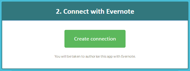 После того, как вы подключили свой сервис к Calendar Connector, нужно подключить Evernote. Делается это на втором шаге так же нажатием одной кнопки: