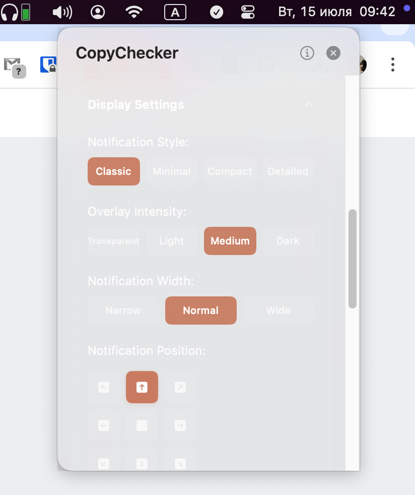 В настройках CopyChecker вы можете поменять длительность самого оповещения и время до его появления. Конечно, можно поменять стиль и место их появления, а также исключить некоторые типы клипов. Кроме этого, можно добавить аудиооповещения.